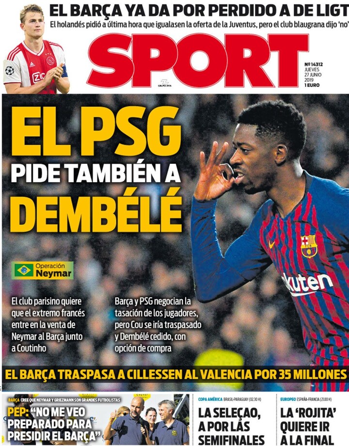 Barça and PSG negotiate the appraisal of the players, but Coutinho would be transferred and Dembélé to be loaned, with a purchase option.