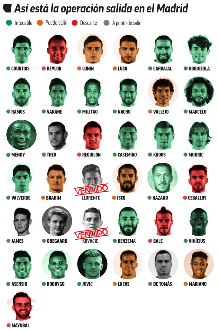 Once these departures have been formalised, Madrid will need to focus on the more difficult exits, such as Gareth Bale. There will be a few situations which will be problematic, while there could be some surprise departures, too.